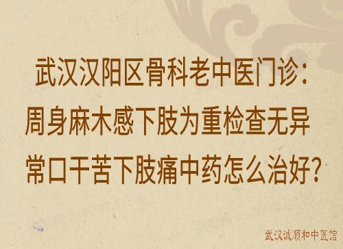 武汉汉阳区骨科老中医门诊:周身麻木感下肢为重检查无异常口干苦下肢痛中药怎么治好?临症周身麻木感而查颈椎、腰椎正侧位片未见明显异常者不在少数,对此西医无明显对症的方法,初起多无明显诱因出现周身麻木,以下肢为著,遇冷则下肢拘挛疼痛,后麻木渐重,下肢时有疼痛,或形体消瘦,面色萎黄,舌淡红,苔薄白,或恶风自汗,鼻涕自流,头昏乏力,口干稍苦,大便稍干,脉象沉缓。中医认为无胸闷胁痛,无忿郁烦躁,亦无青紫瘀斑,昼轻夜重,知非气郁、血瘀所致,头身爽利,舌薄不腻,故亦非痰饮阻滞所起。其形消瘦,面色萎黄,或是气血亏虚,脉络失养所起?详查病机,病家汗出恶风,鼻鸣形瘦,此乃风寒所伤,营卫不和也。脾主四肢,营卫失和,气不至经,经输不利,故见麻木不仁。气虚营弱,周身失养,故见头昏乏力、脉沉缓。口干稍苦,大便稍干,此乃寒郁化热之征。