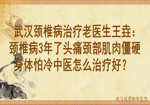 武汉颈椎病治疗老医生王垚:颈椎病3年了头痛颈部肌肉僵硬身体怕冷中医怎么治疗好?项痹医案一则:患者女,34岁,初诊诉颈椎病3年余,病史:患者为办公文员,形体略胖,面目稍显虚肿,平时活动量少,很少出汗,在3年前无明显诱因出现头痛,颈部僵硬等症状,在当地医院诊断为颈椎病,经过治疗效果不显,3年来反复发作不堪其扰。后经人介绍慕名来门诊求治。