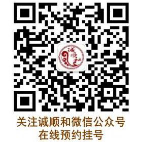 请扫描以下诚顺和中医门诊部微信公众号二维码,关注后,点击微信公众号底部菜单的:在线挂号,进入后按照提示填写相关信息并提交即可。